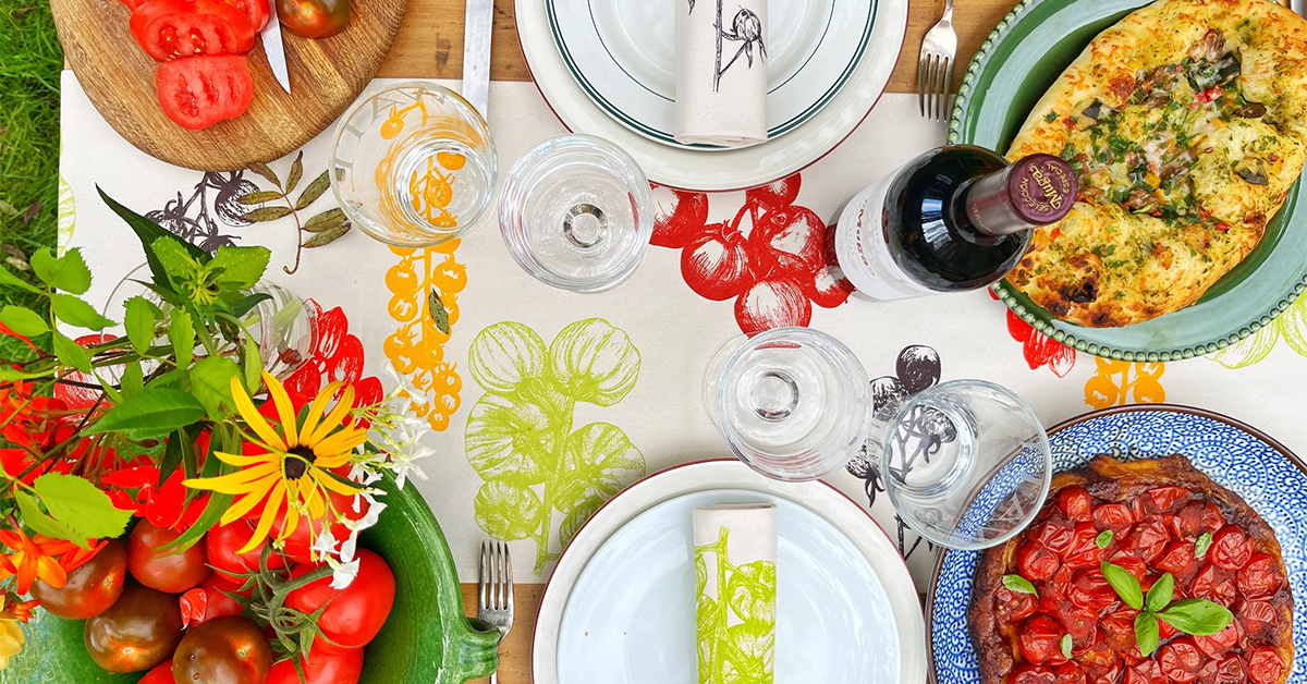 At Lottie Day, we create handmade napkin sets and handprinted tea towels inspired by the Norfolk coast and countryside. From vegetable print napkins featuring courgettes and tomatoes, to seafood-themed napkins perfect for coastal kitchens, each design is screen-printed by hand in our Norfolk studio using eco-friendly inks. Explore our tea towel gifts and unique homeware accessories - thoughtful, sustainable presents for food lovers, gardeners, and design enthusiasts.